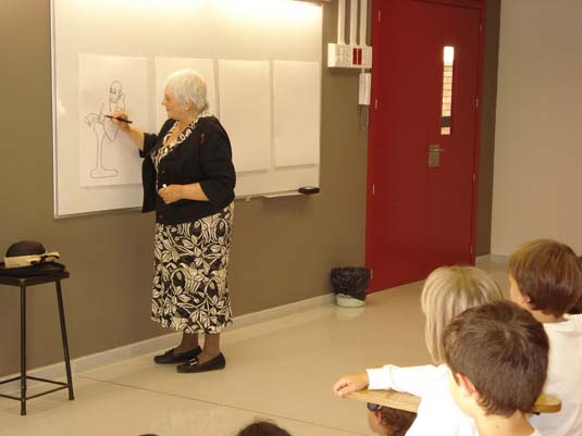 Durant les seues explicacions, Pilarín Bayés ha anat mostrant, als nens i nenes del Col·legi, la seva destresa i el seu estil, dibuixant, en cada grup, 4 o 5 làmines, que després ha regalat al centre.