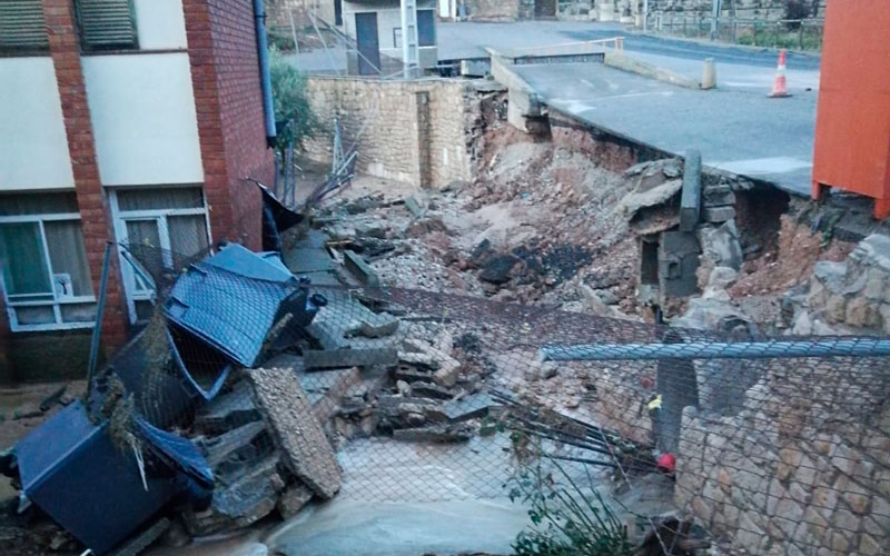 A Arbeca, a les parts fondes com l’avinguda Montserrat i la zona esportiva i de les piscines també hi va arribar la rovinada i va arrossegar cotxes i contenidors, a més d’inundar baixos de cases. Una situació similar es vivia a Vinaixa, on la carretera d’entrada que creua la via per sota baixava com un torrent. En aquest accés hi ha, precisament, l’escola, on ha cedit quasi tot un mur lateral. També la plaça dels Arbres ha patit danys considerables. A Juneda, l’accés per davall de la via també ha quedat completament inundat, com ha passat en anteriors episodis de pluges, i el riu Femosa s’ha desbordat fins a agafar una amplitud de desenes de metres.