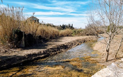 Aquest afluent del riu Femosa, que recull les aigües de la vall de Vinaixa, fa dies que baixa abundant i sense parar. Als trams on la llera es va eliminar, l'aigua nega camps i els fa impracticables. Als que hi ha llera, en canvi, el riu té tot l'aspecte d'un riu, que és el que és.