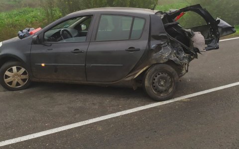 Dos cotxes van xocar ahir al matí a la carretera de Castelldans a Juneda en un punt on s’havia vessat la càrrega d’un camió que porta aquest residu oliós.