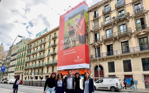 Una parella arbequina, en una gran lona publicitària al centre de Barcelona